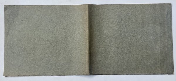 - Piegato a metà, presumibilmente per spedizione o trasporto all’epoca, con segno ormai ineludibile di piega (vedi foto) su copertine e pagine; lievi segni del tempo sui margini, una sigla a penna sull’angolo esterno inferiore del piatto anteriore, punti metallici ossidati, con ultima carta incollata al piatto posteriore ma distaccata dal blocco delle prime undici, vedi foto. Folded in half, some wear to the borders, and last page is detached from the first 11 leaves, while being still attached to back cover. Oxidation on metal clips.