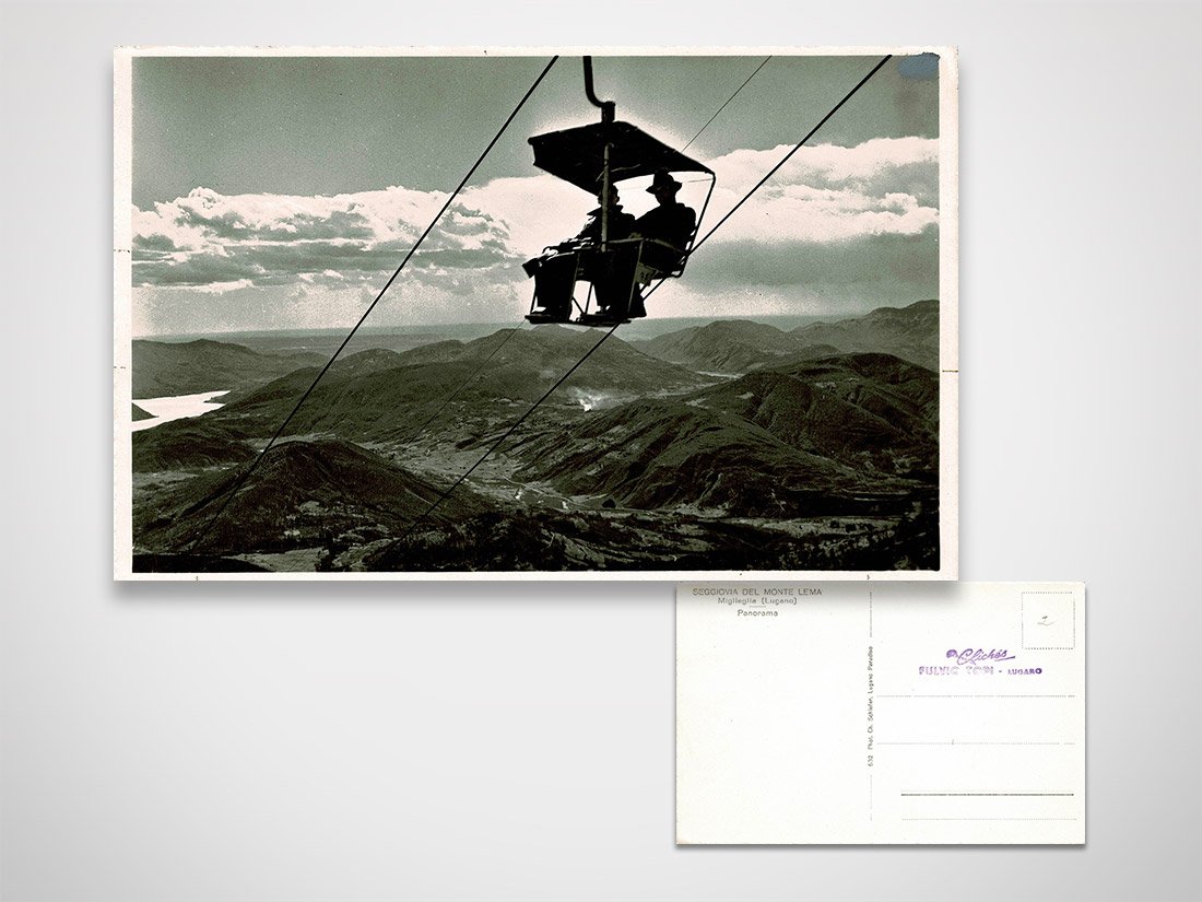 Cartolina Seggiovia del monte Lema, non viaggiata, timbro originale Fulvio Topi  Dimensioni: 10,5 x 14,8 cm