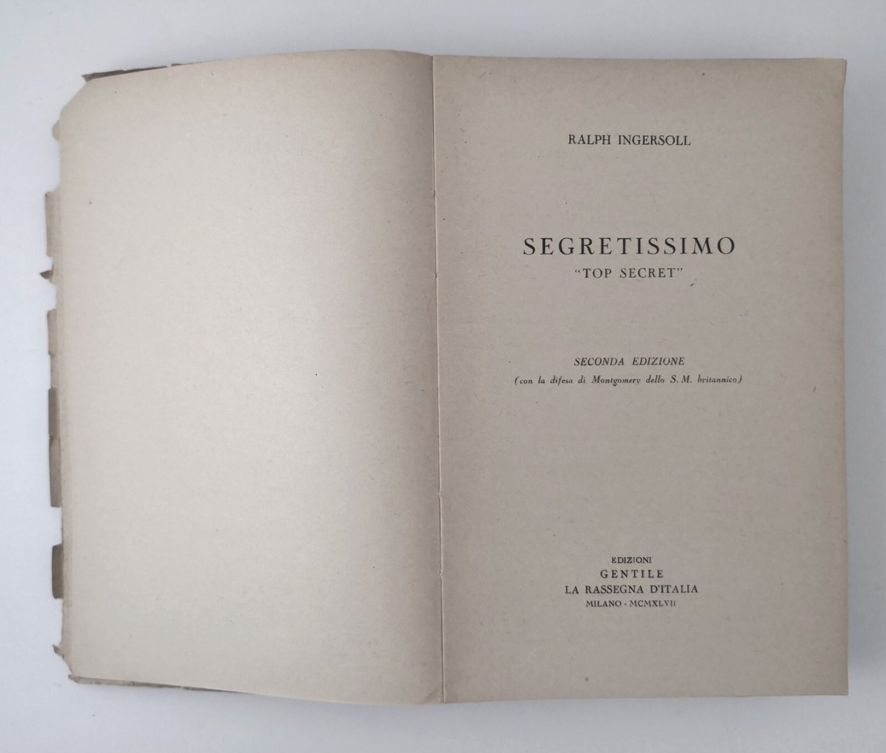 SEGRETISSIMO top secret di Ralph Ingersoll 1947 Gentile Rassegna d'Italia Libro