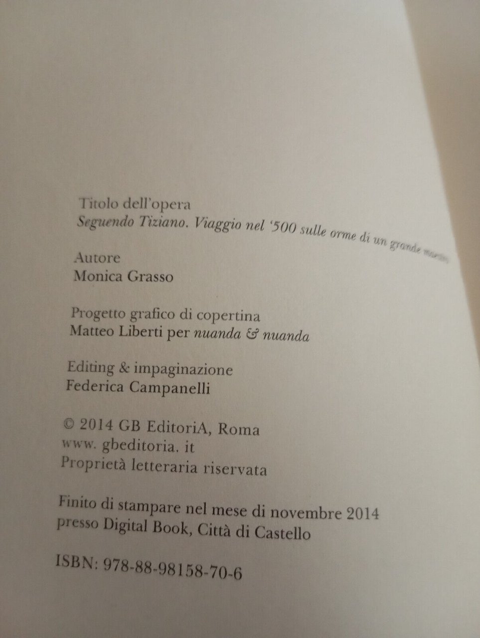 Seguendo Tiziano, Monica Grasso, GBE, 2014