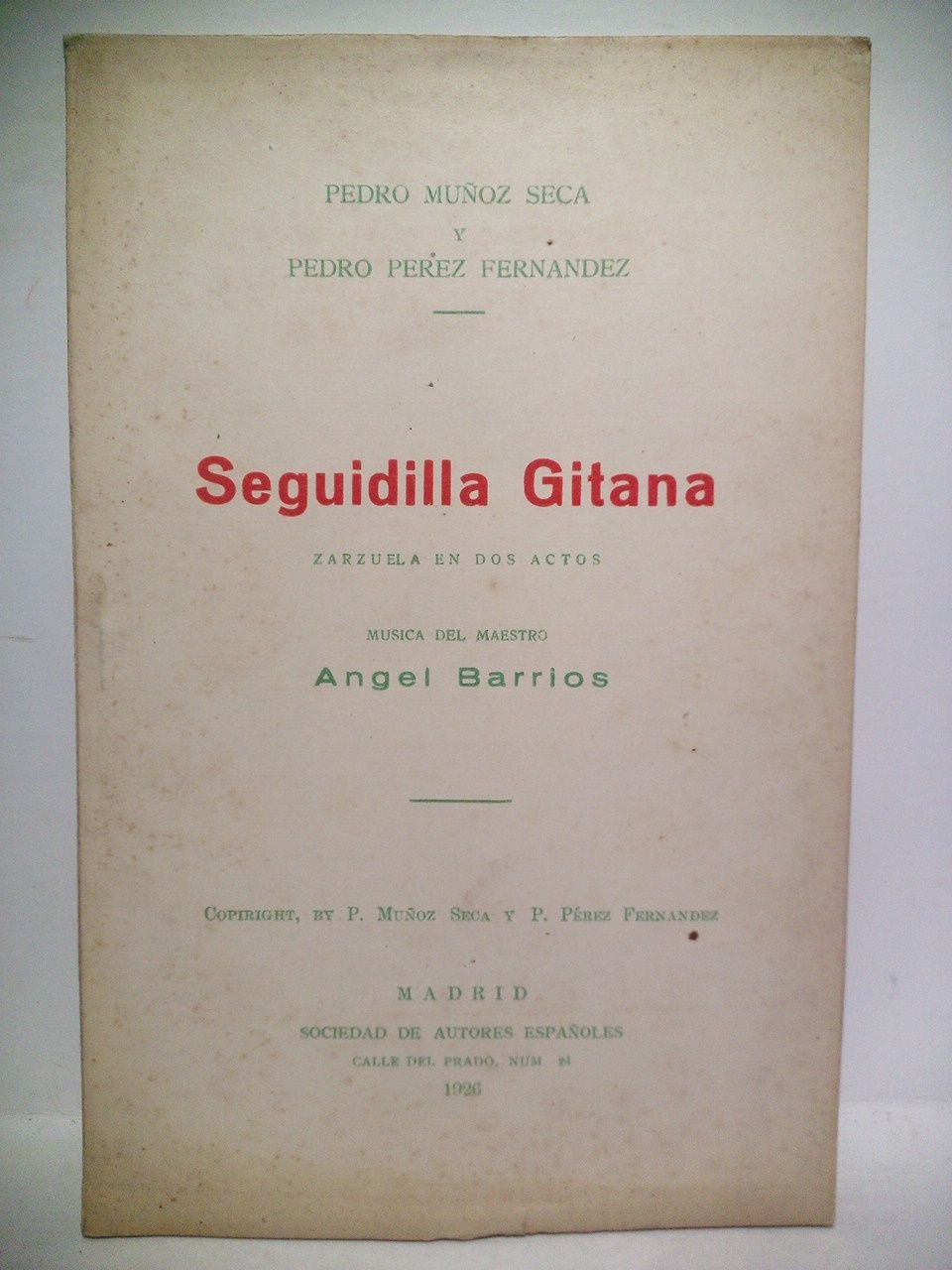Seguidilla Gitana. (Zarzuela en dos actos, el segundo dividido en tres cuadros. Estrenada en el Teatro Apolo, de Madrid, el 30 de Octubre de 1926) / Música del maestro Angel Barrios