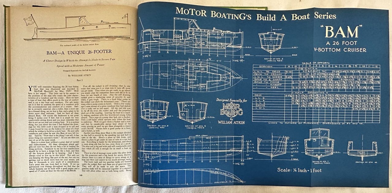 Seconda edizione del 1944 di questo volume di progetti di motori per barche di William Atkin, Weston Farmer. All'interno descrizione dei vari modelli di barche e per ognuno tavola ripiegata con il modello del motore. In ottime condizioni. Copertina in tela editoriale in ottime condizioni generali con lievi usure ai margini e dorso. Legatura in buone condizioni. All'interno le pagine si presentano in ottime condizioni con rare fioriture. In 8. Dim. 29,5x15 cm. Pp. 184.Second edition of 1944 of this volume of projects of motor boats byWilliam Atkin, Weston Farmer. Inside description of different models of boats and for each one a folded plate with the project of motor. In very good conditions. Editorial cover in very good general conditions lightly worn in the extremities. Binding in good conditions. Inside pages are in very good conditions with occasional foxing. In 8. Dim. 29,5x15 cm. Pp. 184.