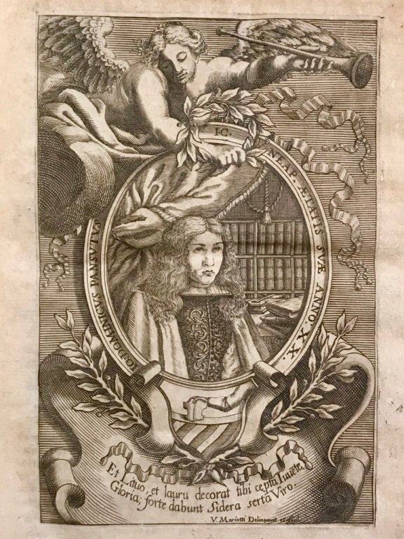 In-folio (cm. 32), legatura coeva in piena pergamena (macchiata) con titolo anticamente ms. al dorso e al taglio inferiore; pp. [32] 243 [57], con un ritratto del giovane giurista napoletano a p. pagina, testo su due colonne, frontespizio in rosso e nero con vignetta silografica; alcune bruniture. L'autore avrebbe pubblicato una continuazione presso altro tipografo nel 1681. Raro. Esemplare molto buono.