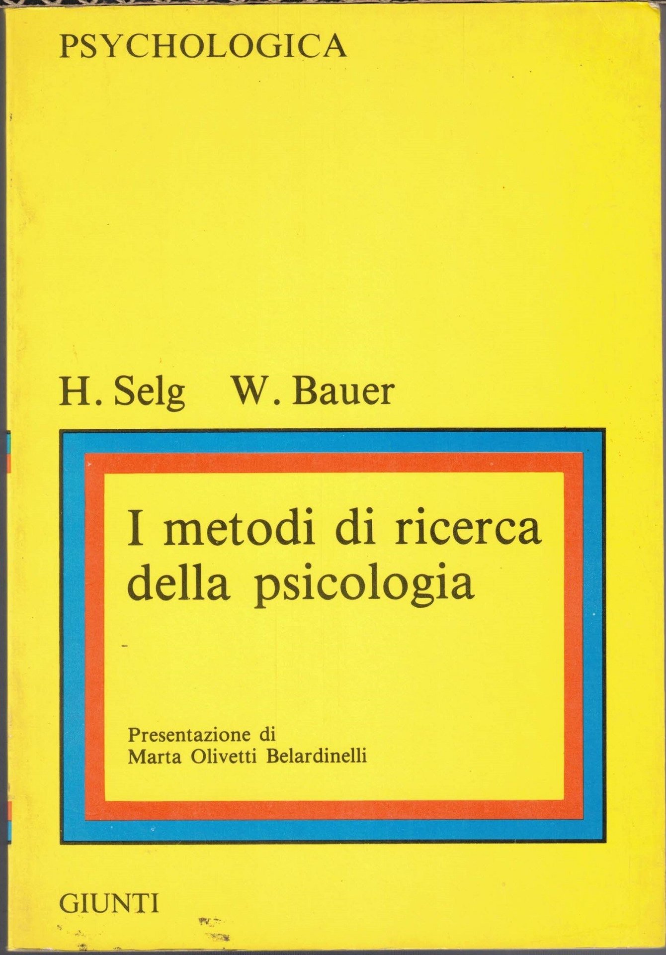 Herbert Selg, Werner Bauer, I metodi di ricerca in psicologia, traduzione di Giancarlo Tucci, presentazione di Marta Olivetti Belardinelli, Giunti Barbèra, Firenze 1988, pp. 196, cm 19, br. ed. Collana Psycologica. Titolo originale: Forschung methoden der psycologie. Minime tracce d’uso alla brossura, lievissima brunitura della carta, per il resto perfetto.