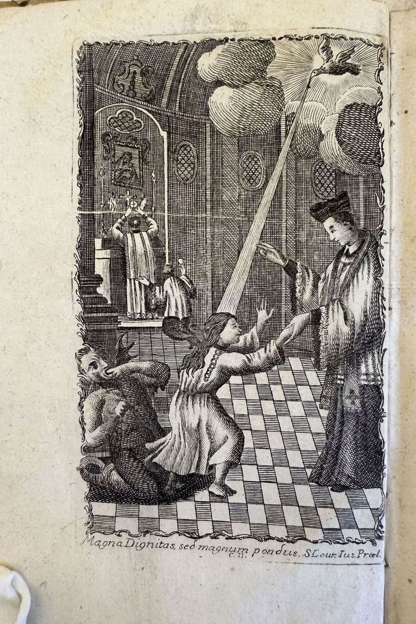 Bella edizione Remondini del 1796 di questa nota opera di Alfonso de Liguori. L'opera è in un unico volume ed è completa. De Liguori fornisce una serie di materie sacre per gli esercizi spirituali dei sacerdoti. La prima parte è sulle materie predicabili: caratteristiche del sacerdote, peccato di incontinenza, messa sacrilega, scandalo, zelo del sacerdote. La seconda parte è sulle istruzioni: celebrazione della messa, castit‡ del sacerdote, predicazione, orazione mentale, mortificazione interna ed esterna, devozione. La terza parte una serie di esercizi delle missioni. Bella incisione in antiporta. Bella legatura in mezza pergamena coeva. Tagli rossi. In buone condizioni. Copertina in mezza pergamena coeva con titolo in oro al dorso in ottime condizioni generali con lievi usure ai margini e dorso. Legatura in buone condizioni. All'interno le pagine si presentano in buone condizioni con rare fioriture. In 8. cm 19x13. pp. 496.Beautiful Remondini of 1791 of this famous work by Alfonso de Liguori. The work is in a unique volume and it is complete. De Liguori provides a series of holy matters for the spiritual exercises of priests. The first part is about preeching matters: carachteristics of priest, scandal, precision of priest. The second part is about instructions: celebration of mass, chastity of priest, preeches, mental orations, internal and external mortification, orations. The third part is about exercises of missions. Beautiful engraving in the frontspice.Beautiful half leather coeval cover. In good conditions. Half parchment cover with gilted title in the spine in very good general conditions lightly worn in the extremities. Binding in good conditions. Inside pages are in good conditions with occasional foxing. Some yellowing.In 8. cm 19x13. pp. 496.<BR><BR>