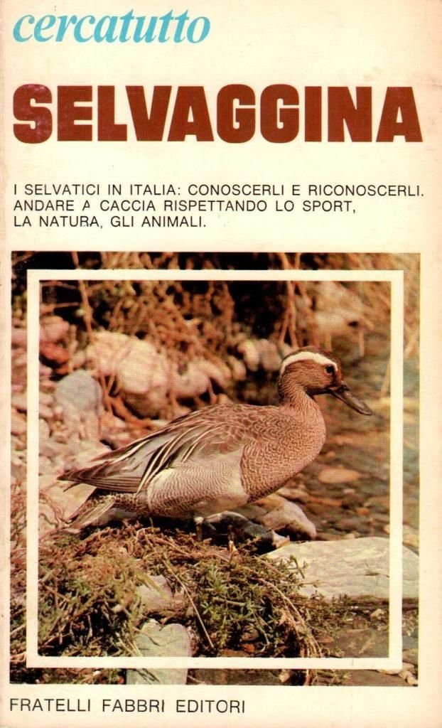 "Selvaggina. I selvatici in Italia: conoscerli e riconoscerli. Andare a caccia rispettando lo sport, la natura, gli animali", edizione 1975, pp. 159, formato 11 x x 18.