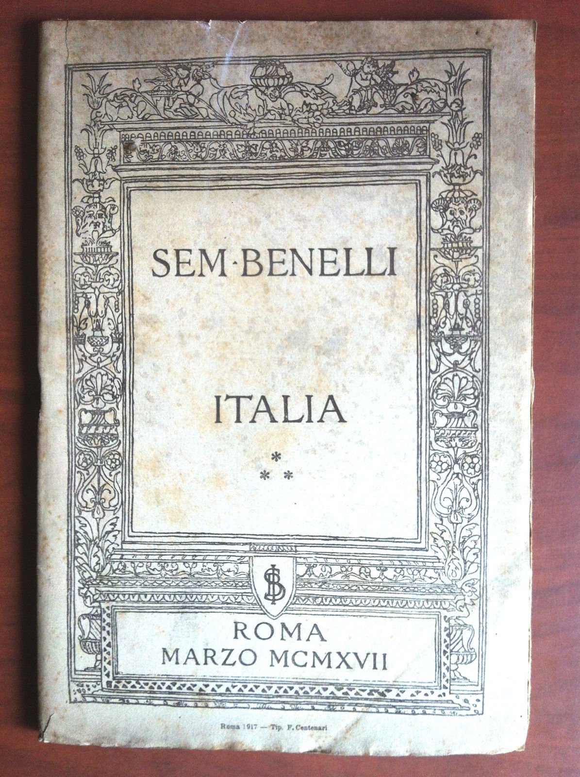 SEM BENELLIITALIAOrazione detta la sera del 13 Marzo 1917 al "Teatro Adriano" in RomaBanca Italiana di sconto 191737 pagine intonse - formato 16,5X24,5 cmottimo stato (100 g)E14210