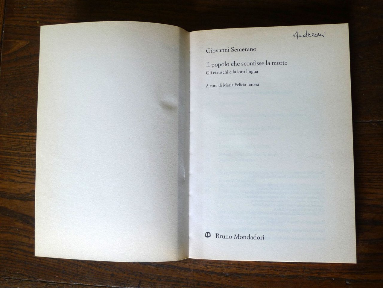 Giovanni Semerano,IL POPOLO CHE SCONFISSE LA MORTE.GLI ETRUSCHI E LA LORO LINGUA.Paravia Edizioni / Bruno Mondadori Editori,Milano 2003,brossura, 21x14,5 cm., pp.XII-163,illustrazioni a colori su tavole incarta patinata fuori testo,collana SINTESI,ISBN: 88-424-9122-5,peso: g.350cod.9318CONDIZIONI DEL LIBRO: buone,firma al frontespizio,copertina e pagine ingiallite,sottolineature a matita