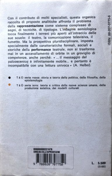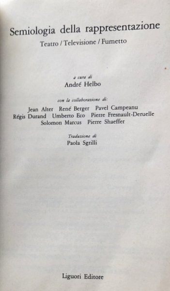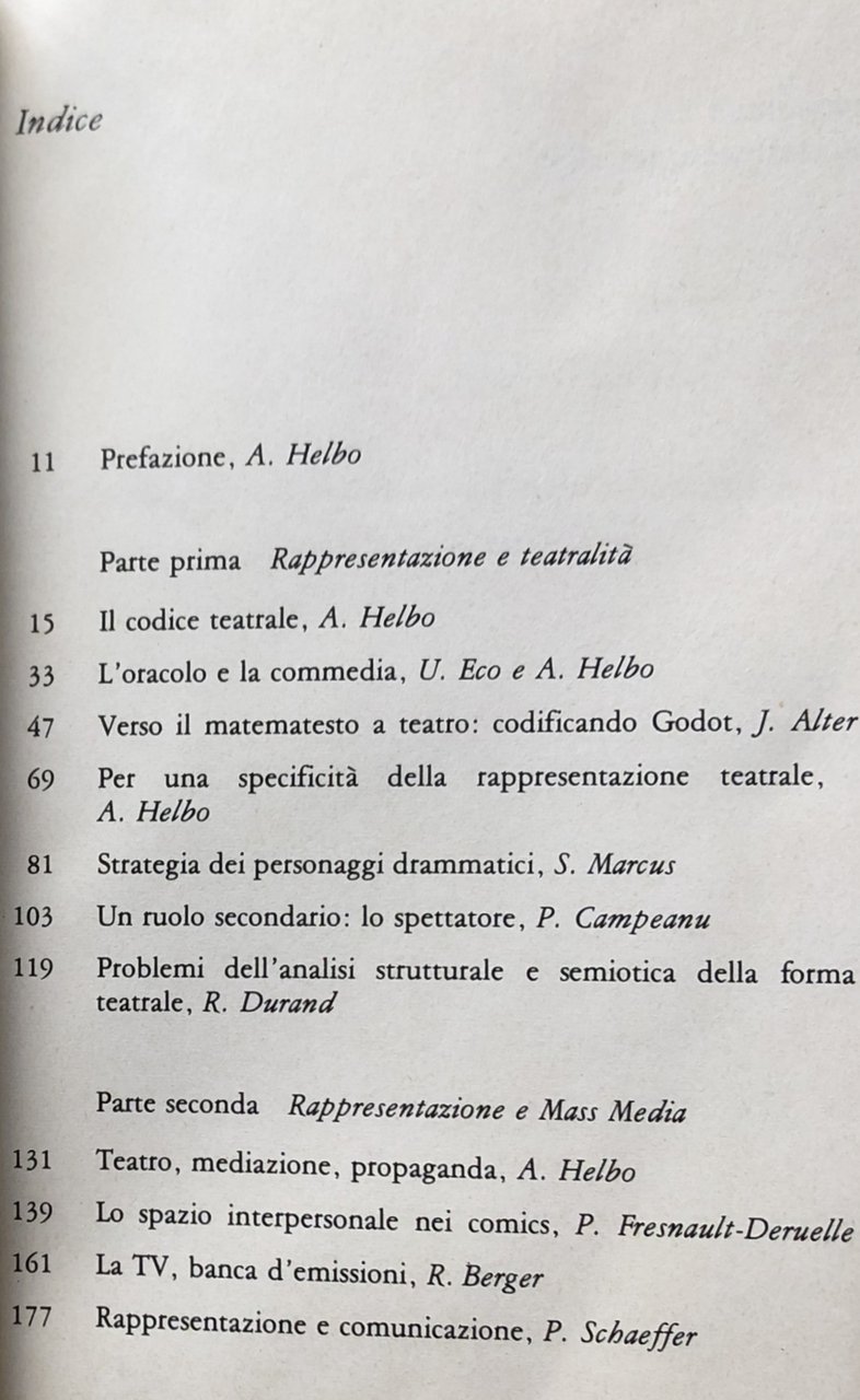 Soggetti: Linguistica, Strumenti di base, Filologia, Semiologia, Semantica, Critica teatrale, Lingua, Opere storiche e generali, Libri rari Vintage fuori catalogo, Filosofia del linguaggio, Segni, Rappresentazione, Teatro, Scena, Mass Media, Semiotica, Letteratura, Teatralità, Oracolo, Commedia, Drammaturgia, Godot, Matematesto, Personaggi, Meditazione, Fumetto, Comics, TV, Epistemologia, De Saussure, Peirce, Martinet, Hjelmslev, Racconto, Theory of Performing Arts, Semologie de la Representation: Theatre, Television, Bande, Semiologia da representação: teatro, televisão, história em quadrinhos, Peter Brook, Performance, Yves Klein, Mounin, Henri Laborit, Mediazione, Cultura, Linguistics, Basic Tools, Philology, Semiology, Semantics, Theater Criticism, Language, Historical General Works, Books Out of Print Catalog, Philosophy of Language, Signs, Performance, Theater, Scene, Semiotics, Literature, Theatricality, Oracle, Comedy, Dramaturgy, Godot, Matematesto, Characters, Meditation, Comics, Comics, Epistemology, Tale, Theory of Performing Arts, Mediation, Culture, Propaganda, Censura, Codicìficazione, Codici linguistici, Censorship, Codification, Linguistic Codes