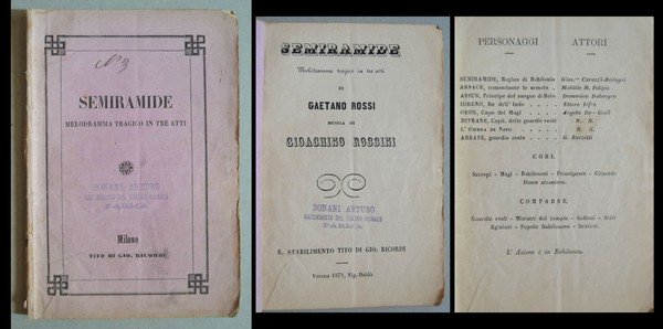 *SEMIRAMIDE Melodramma tragico in tre atti di Gaetano Rossi musica di Giochino Rossini. 1871