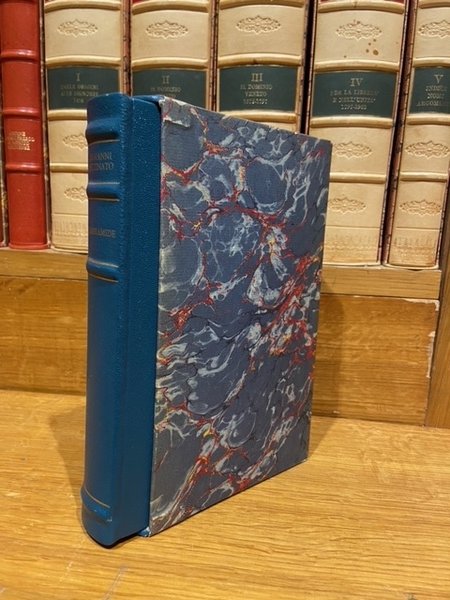 Libro in perfette condizioni, copertina rilegata in pelle intonsa, pagine chiare e legibili, parte superiore di queste laminata in oro. Munito di cofanetto in cartoncino e carta firenze .