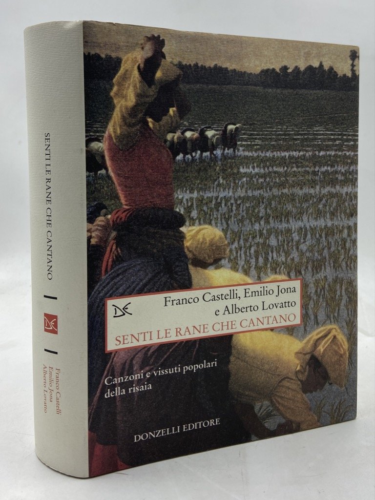 Tela editoriale con sovraccoperta illustrata, cm 20.5 x 15, pp XX 555 (1), 47 figure in nero fuori testo, CD allegato. Una nota di dono a penna sulla prima sguardia. Corposa monografia dedicata allo studio sistematico della storia del canto di risaia, elaborato a partire dalle ricerche sul campo condotte da Emilio Jona e Sergio Liberovici negli anni sessanta-settanta; cd allegato con le registrazioni. Trascrizioni musicali di Sergio Liberovici, Alberto Lovatto, Giacomo Platini.
