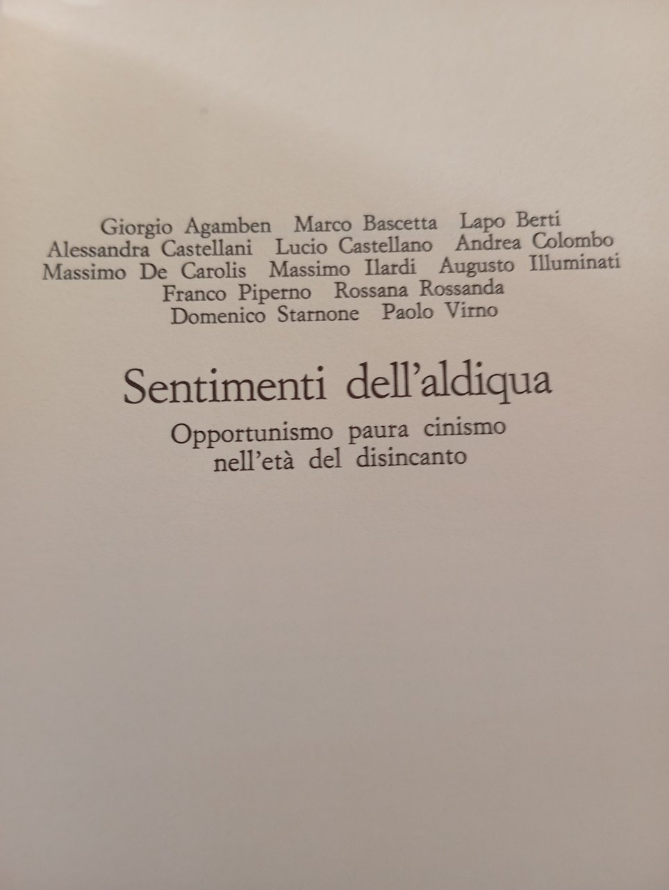 Sentimenti dell'aldiqua, Agamben Bascetta Starnone Virno Rossanda Ilardi, 1990