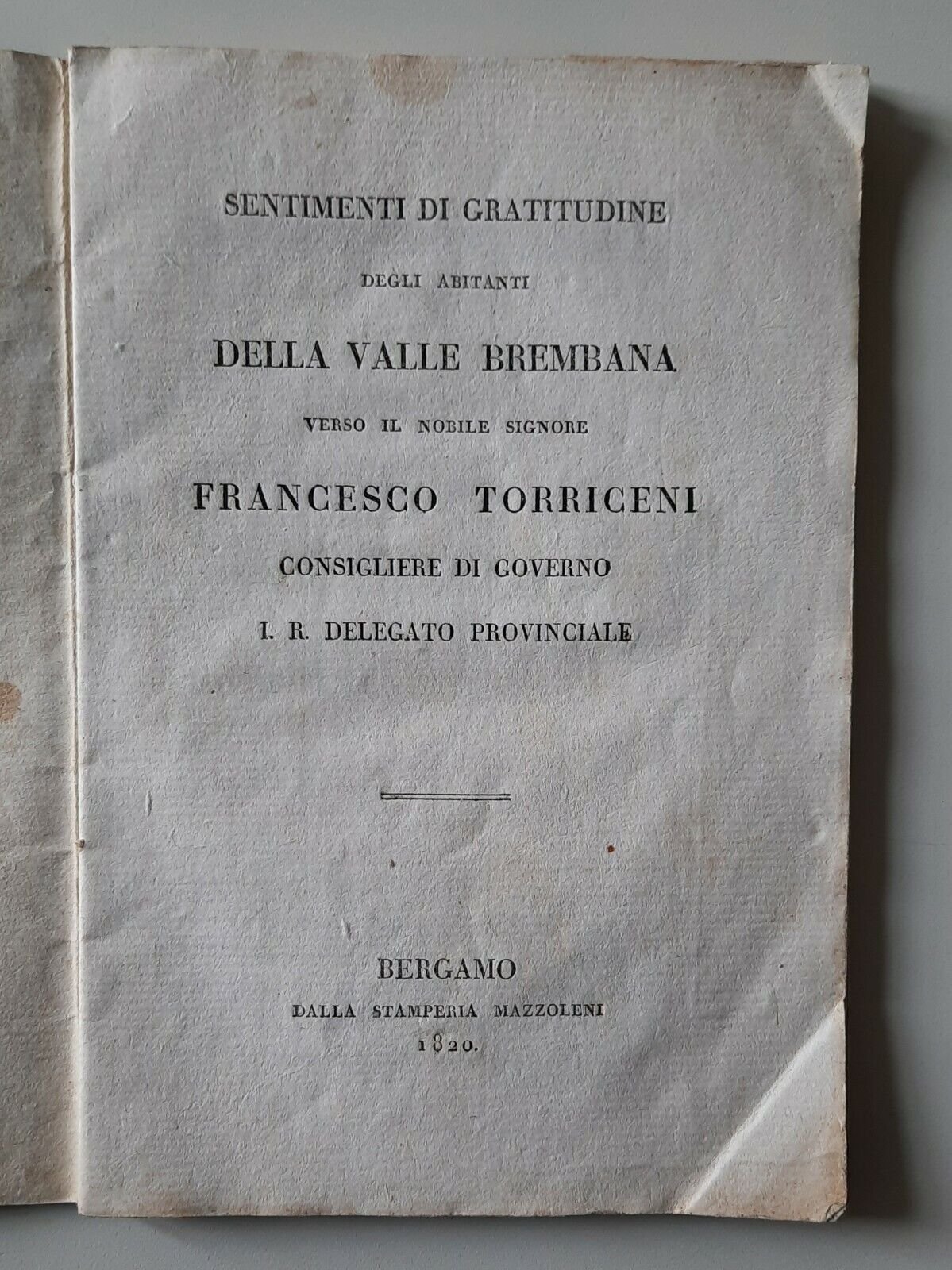 SENTIMENTI DI GRATITUDINE DEGLI ABITANTI DELLA VALLE BREMBANA VERSO ... 1820