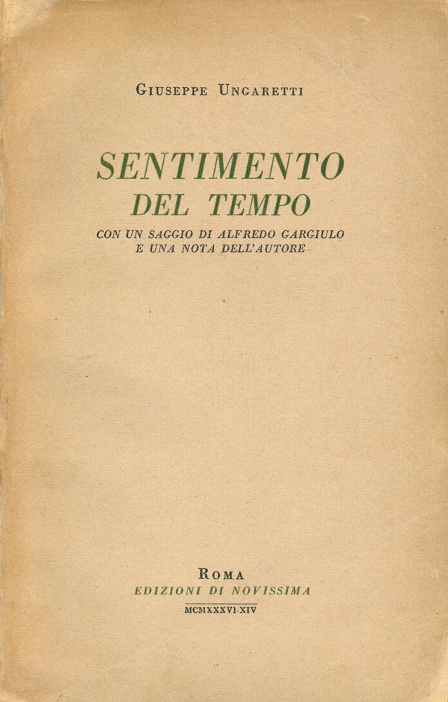 LIBROSeconda edizione aumentata e corretta.Esemplare 271, in complessive ottime condizioni (leggera brunitura al dorso e ai bordi delle pagine).Seconda edizione con l'aggiunta di sette poesie scritte tra il 1932 e il 1933 e con ritocchi di forma approntati dall'autore. Tiratura di 1.100 copie numerate su carta Sirio (oltre a una tiratura di testa di complessive 86 copie variamente contrassegnate su carta Ingres). -- «Sentimento del tempo» è da considerarsi la seconda raccolta di Ungaretti, il quale fino a quel momento aveva pubblicato in libro, più volte e con numerose varianti, solo il nucleo noto come «L’Allegria». Rappresenta infatti il secondo capitolo della «Vita di un uomo», nome collettivo sotto il quale il poeta vorrà riunire la sua produzione nel secondo dopoguerra.