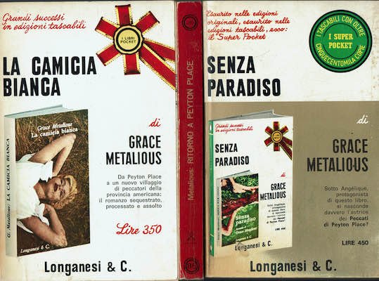 Libri in brossura usati tenuto modestamente bene. Senza paradiso ,sulla prima di copertina una piccolissima lacerazione di tre millinetri ( all'inetrno dell'immagine sulla lettera lon ) anno 1969 La camicia bianca ,tenuto bene, anno 1968/1 edizione. Ritorno a Peyton Place ,tenuto bene, anno 1967/1 edizione. Lievemente bruniti i tagli.