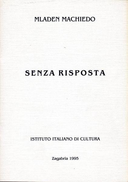 Senza risposta, prima edizione 1995, pp. 39, formato 14 x 20.<BR>Copertina morbida di colore grigio con titoli in nero al piatto anteriore. In prima pagina presente dedica dell'autore alla scrittrice Minnie Alzona, datata 13 maggio 1995. <BR>Ottime condizioni.