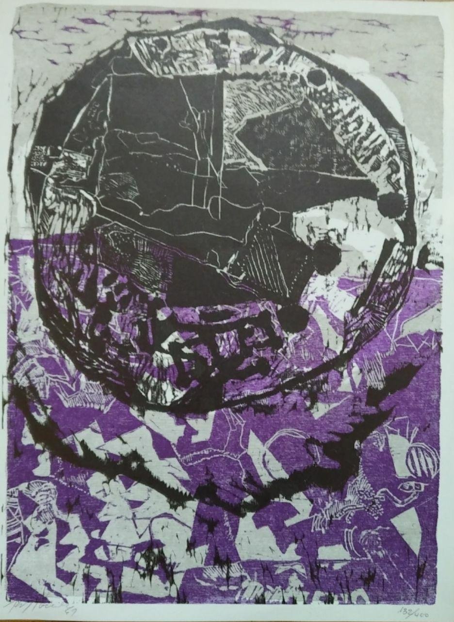 Firmato in basso a sinistra. Tiratura 132/400. Xilografia tirata in occasione della Biennale del 1969 a Venezia. Timbro asecco della Biennale in basso a destra. Esposizioni in tutto il mondo. xilografia a tre colori cm. 30 x 40 Molto buono (Very Good) buon es..