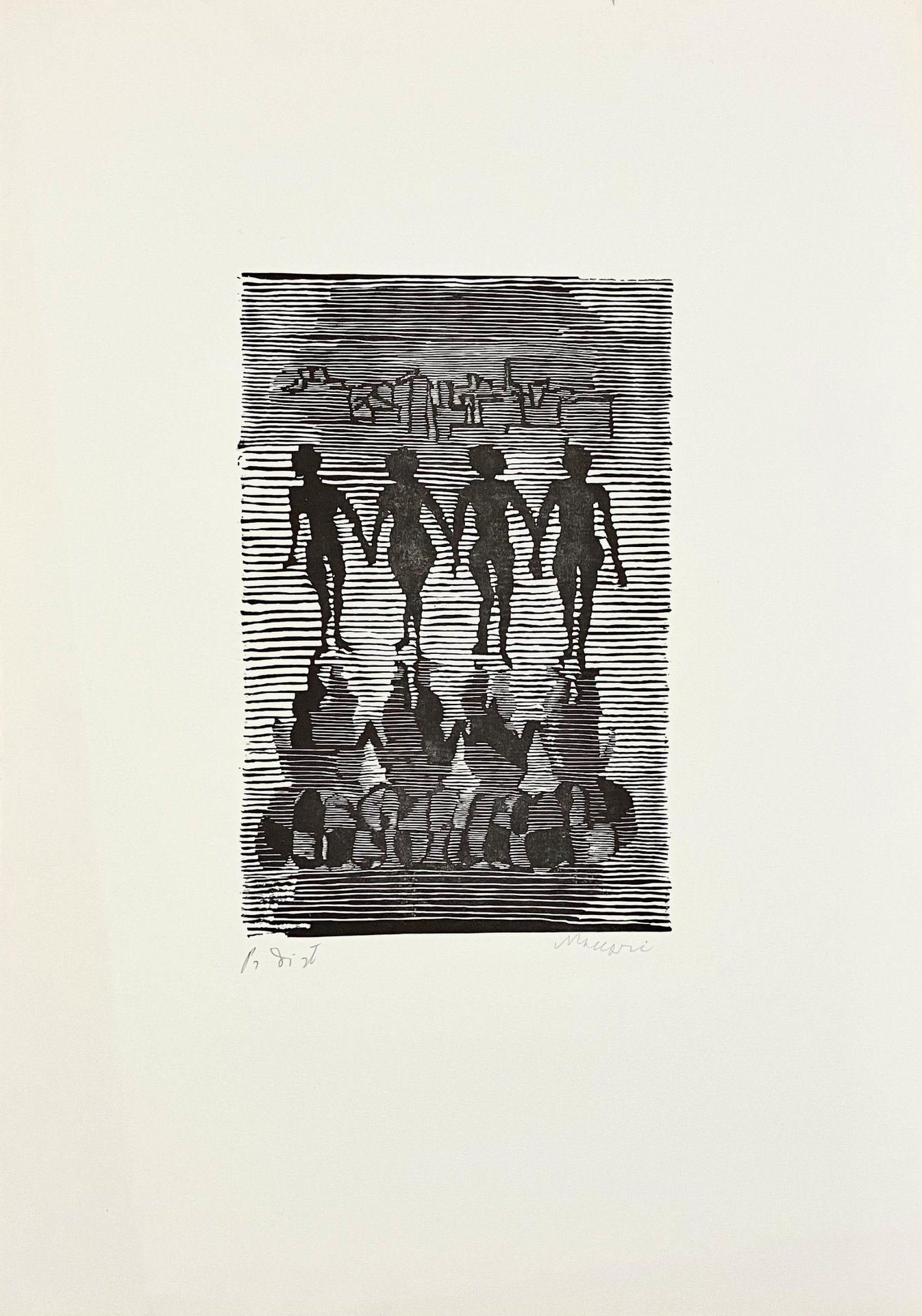Incisione su linoleum, prova di stampa, firma dell'artista a matita.