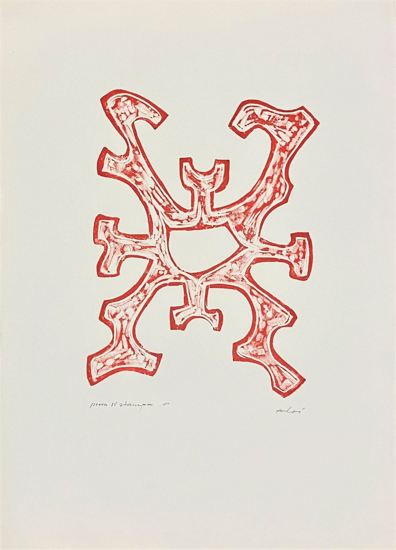 Incisione su linoleum, prova di stampa "1°", firma dell'artista a matita.