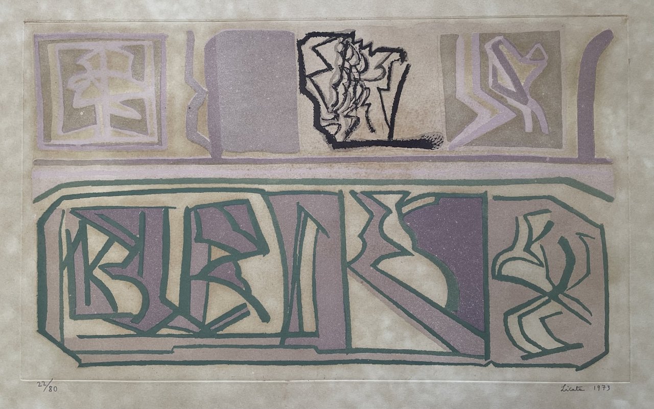 Tiratura 22/80 acquatinta battuta cm. 50 x 30; foglio cm. 16 x 54 Buono (Good) Buon es., carta brunita.