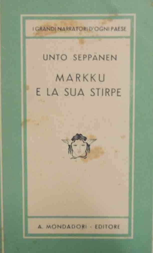Unto Seppanen, Markku e la sua stirpe, A. Mondadori Editore, s.l. (ma stampato a Verona, presso le Officine Grafiche A. Mondadori) 1942, seconda ed., pp. 486, cm 20, br. ed. Collana Medusa, n. 135. Titolo originale: Markku ja hanen sukunsa. Traduzione di G. Baseggio. Leggere tracce d’uso e lievi abrasioni alla brossura, minime fioriture, per il resto ben conservato.