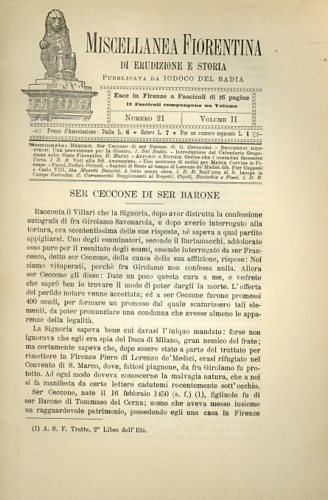 Firenze, Miscellanea Fiorentina di Erudizione e Storia 1899, cm.17x25, fascicolo di pp.16.