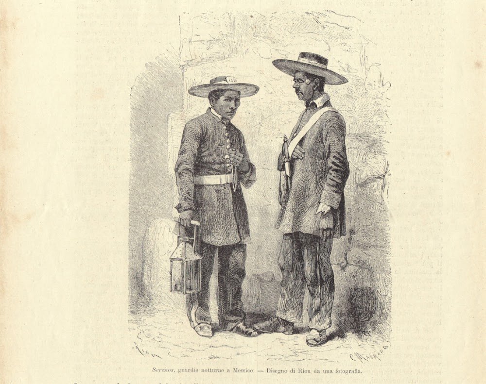 Serenos, guardie notturne a Messico. Illustrazione 1864