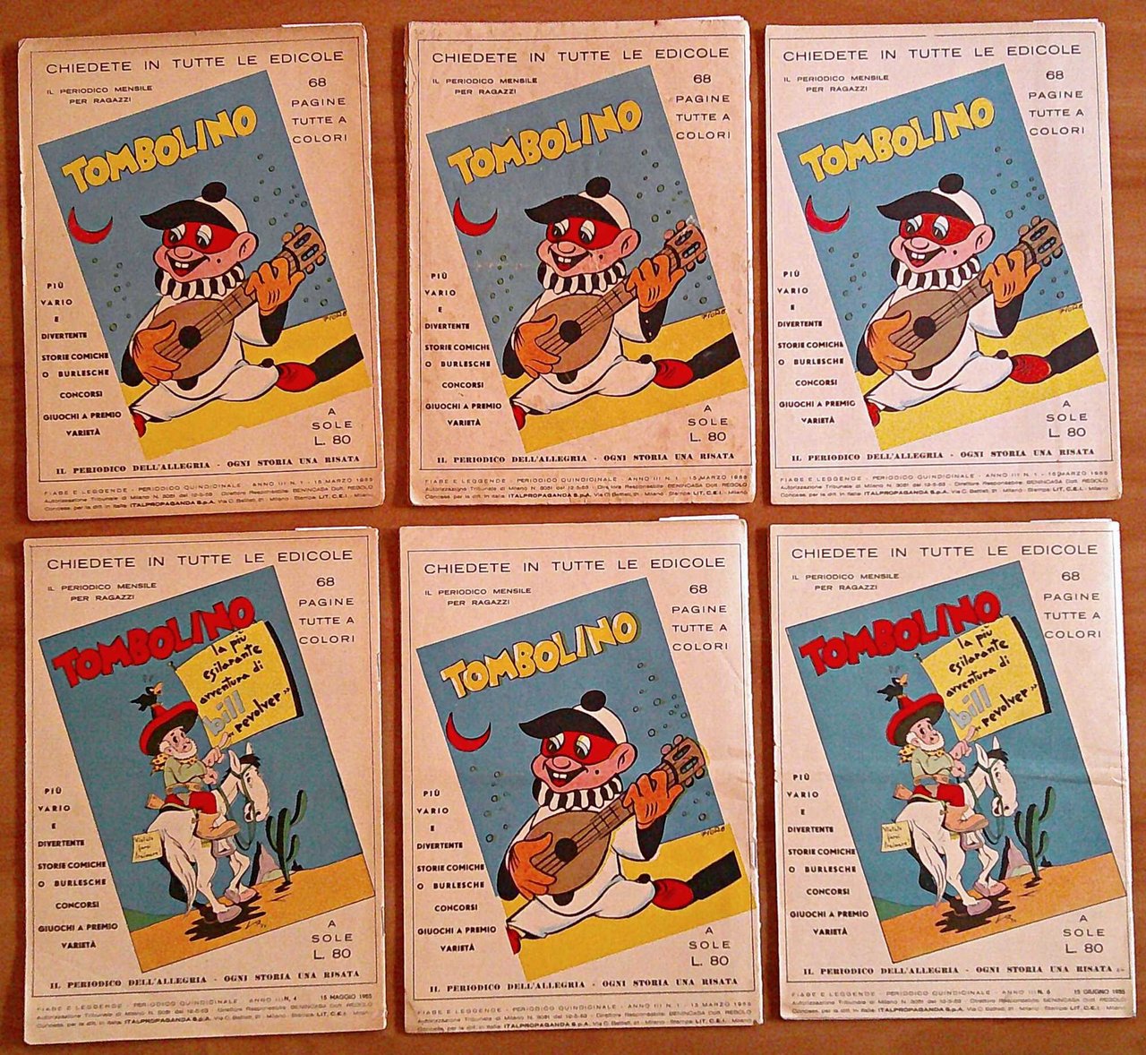Serie Completa di 6 Fascicoli PINOCCHIO - Coll Fiabe e Leggende, 1955 ill. TONELLI