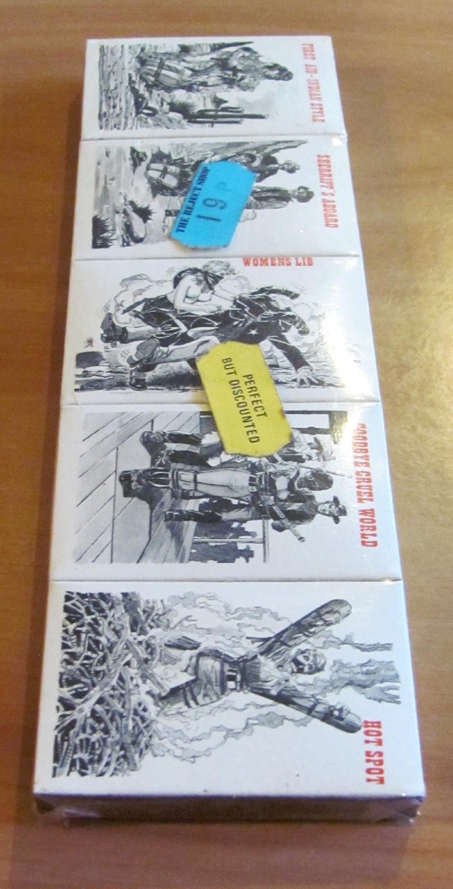 Serie Completa di 5 Scatole di Fiammiferi - Complete Series Matchboxes. Scatole illustrate a fumetti in b/n su entrambe le facciate. Blisterate. The Cornish Match Company, anni '70. 18x5,5x1. Rare e in Stato di Nuovo. , Ottimo (Fine)