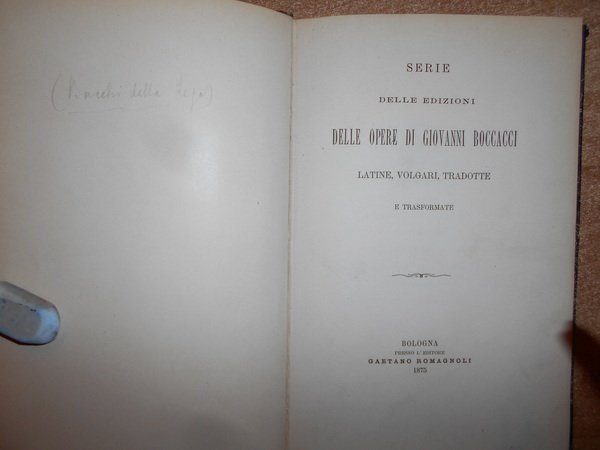Serie delle edizioni delle Opere di Giovanni Boccacci latine, volgari, tradotte e trasformate