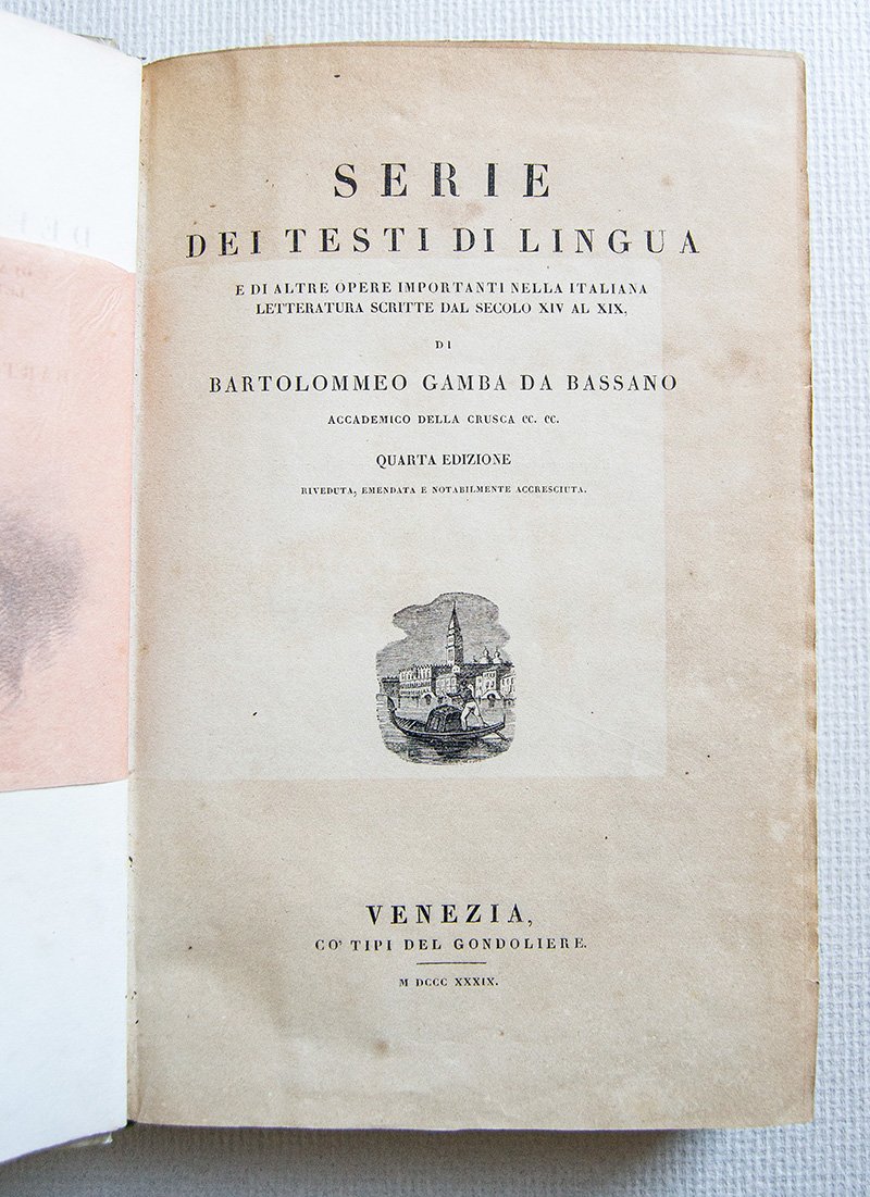 Serie di testi di lingua e di altre opere importanti nella italiana letteratura scritte dal secolo XIV al XIX. Quarta Edizione.