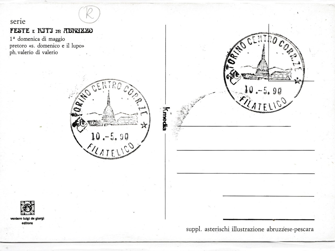 formato grande non viaggiata, piccolissime abrasioni agli angoli, annullo filatelico Torino centro Corrispondenze 10 05 1990