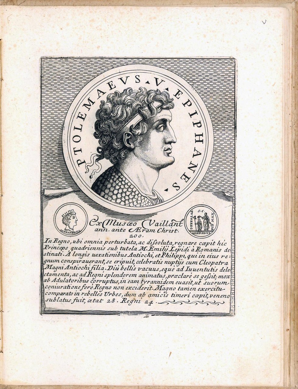 Series Ptolemaeorum regum Aegypti incisoribus iconum Caietano Piccinni characterum Ioanne Petroschi