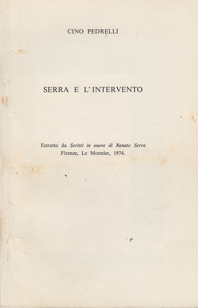 In-16Cm 18 x 11,7), pp. da 367 a 402, brossura editoriale. Estratto da Scritti in onore di Renato Serra, Firenze, Le Monnier, 1974. Un segnetto a penna. MOLTO BUONO