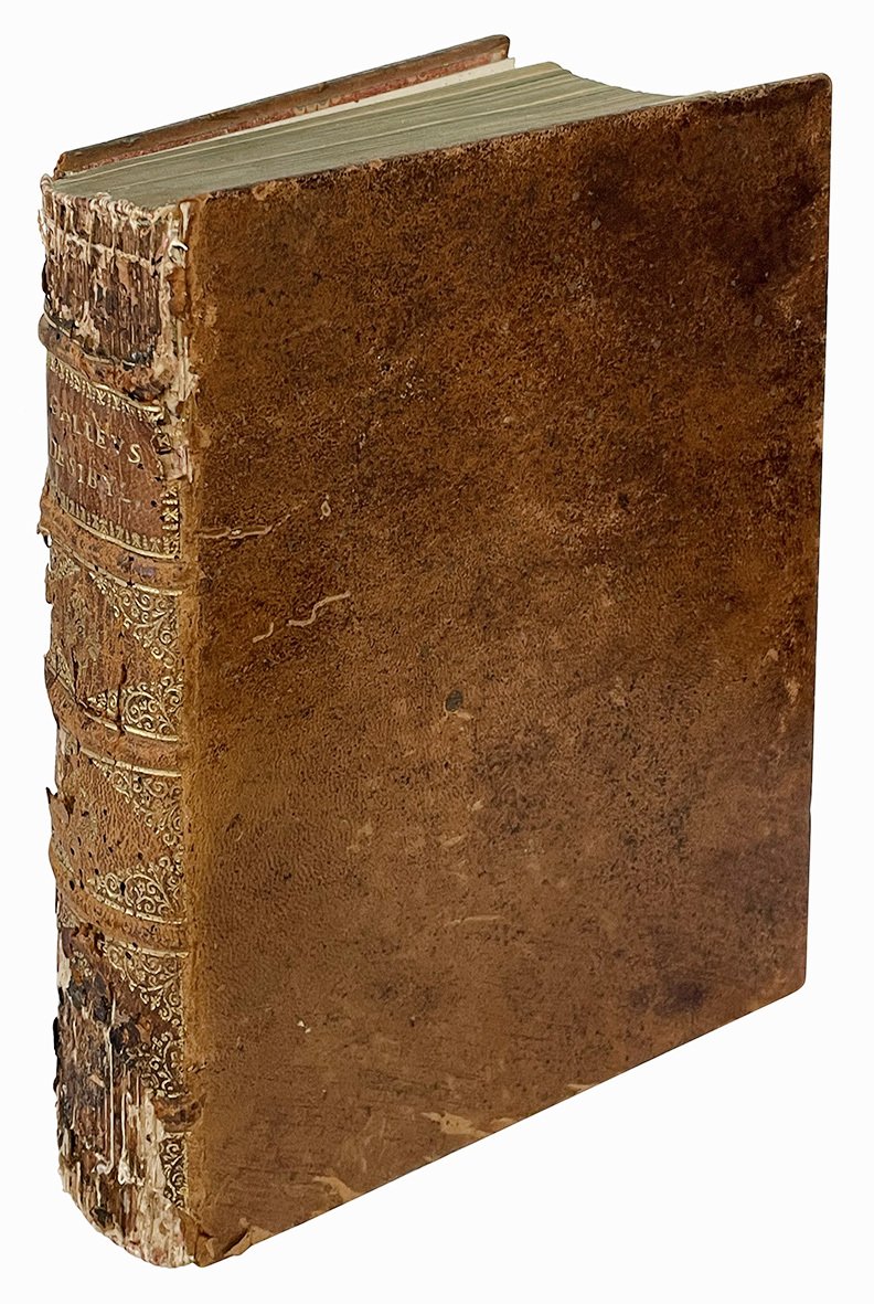 In 4to (mm 202x156); pp. [40], 658, [26], [15] c. di tav. calcografiche fuori testo, di cui una ripiegata (ritratto dell'autore di Romeyn de Hooghe, datato 1686). Segnatura: π4 **4 a-b4 A-I4 K3 L-Qqqq4 Rrrr3. Titolo inciso, vignetta xilografica al frontespizio. Iniziali, frontalini e fregi xilografici. Frontespizio un po' sporco. Esemplare leggermente, uniformemente brunito e fiorito. Timbro rimosso al frontespizio. Restauro all'angolo inferiore esterno dell'ultima carta. Piena pelle coeva. Dorso a cinque nervetti con fregi e titolo in oro. Dentelles dorate. Tagli verdi. Pesanti mancanze e fori di tarlo al dorso, segni di tarlo al piatto posteriore. Internamente buona copia marginosa.