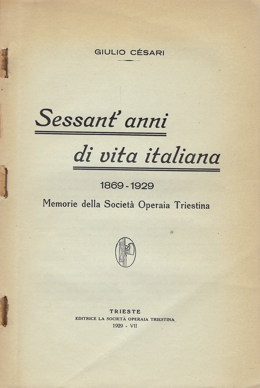 Sessant'anni di vita italiana 1869-1929. Memorie della Società Operaia Triestina.