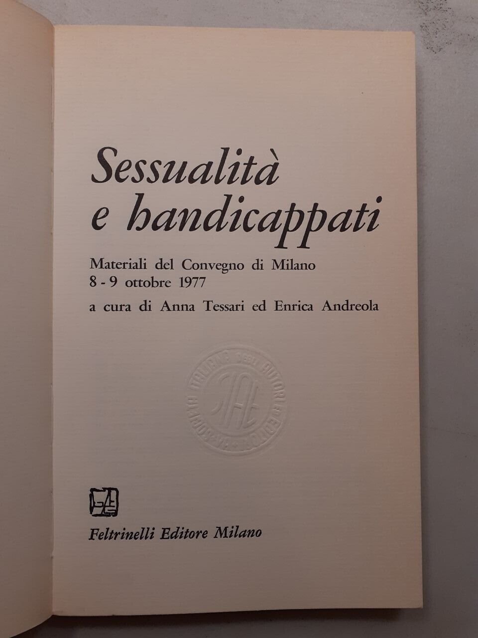 SESSUALITA E HANDICCAPPATI,Feltrinelli 1978[atti convegno Milano,Tessari