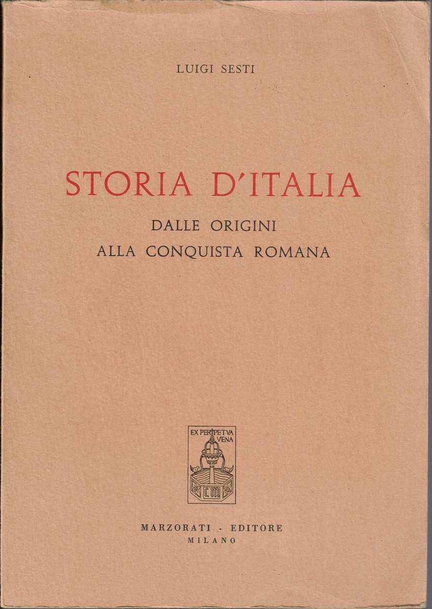 Luigi Sesti, Storia d’Italia. Dalle origini alla conquista romana, Casa Editrice Dott. Carlo Marzorati, Milano 1960, pp. 538, cm 24, br. ed. Lievi tracce d’uso, minima brunitura della carta, per il resto ottimo esemplare.