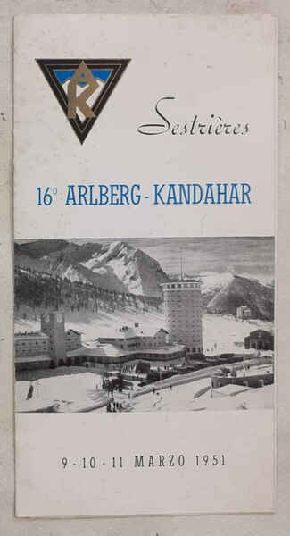 Pieghevole di 6 facciate di cm. 20 x 10,5; con illustraz. fotograf. in nero con tracciato della pista di discesa, due disegni, illustrazione fotograf. e stemma dell'A.K. in colore e in oro in copertina. VG. ** Norme generali, progamma, premi, albo d'oro.