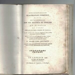 [CZG] .DAL REVERENDISSIMO GIO: BATTISTA DE GIROLAMI QU: GIORGIO DI FANNA PIEVANO DI FAEO DIOCESI DI PADOVA: LE QUALI CONSISTONO.: DUE TRA LE QUALI SONO UNA LA SOLUZIONE DEL CELEBRE PROBLEMA DELIACO. LEGATURA RIFATTA,PRIVO DELLA TAVOLA,OTTIMO PER IL RESTO. PAG. 43 CARTONATO RIGIDO NON EDITORIALE. MIS MM 185X125