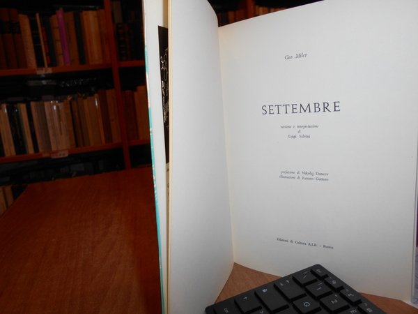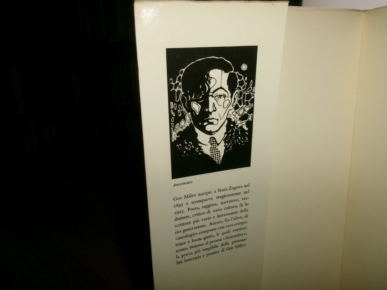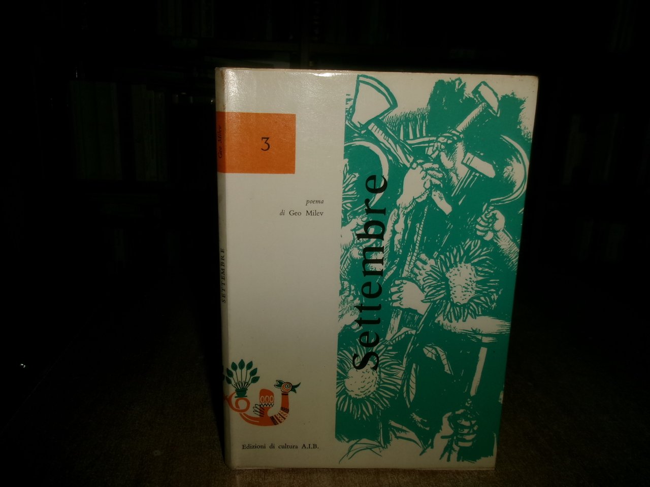 GEO, Milev. Roma, edizioni di cultura A.I.B. s.d. SETTEMBRE poema di Geo Milev. Versione e interpretazione di Luigi Salvini. Prefazione di Nikolaj Doncev. (Illustrazioni di Renato Guttuso). In-8° cop. edit. a colori. 37 pp. con 6 tavole f.t. di Renato Guttuso. Libro in ottimo stato di conservazione. Neg. lett. mod. mob. H entro busta trasp.