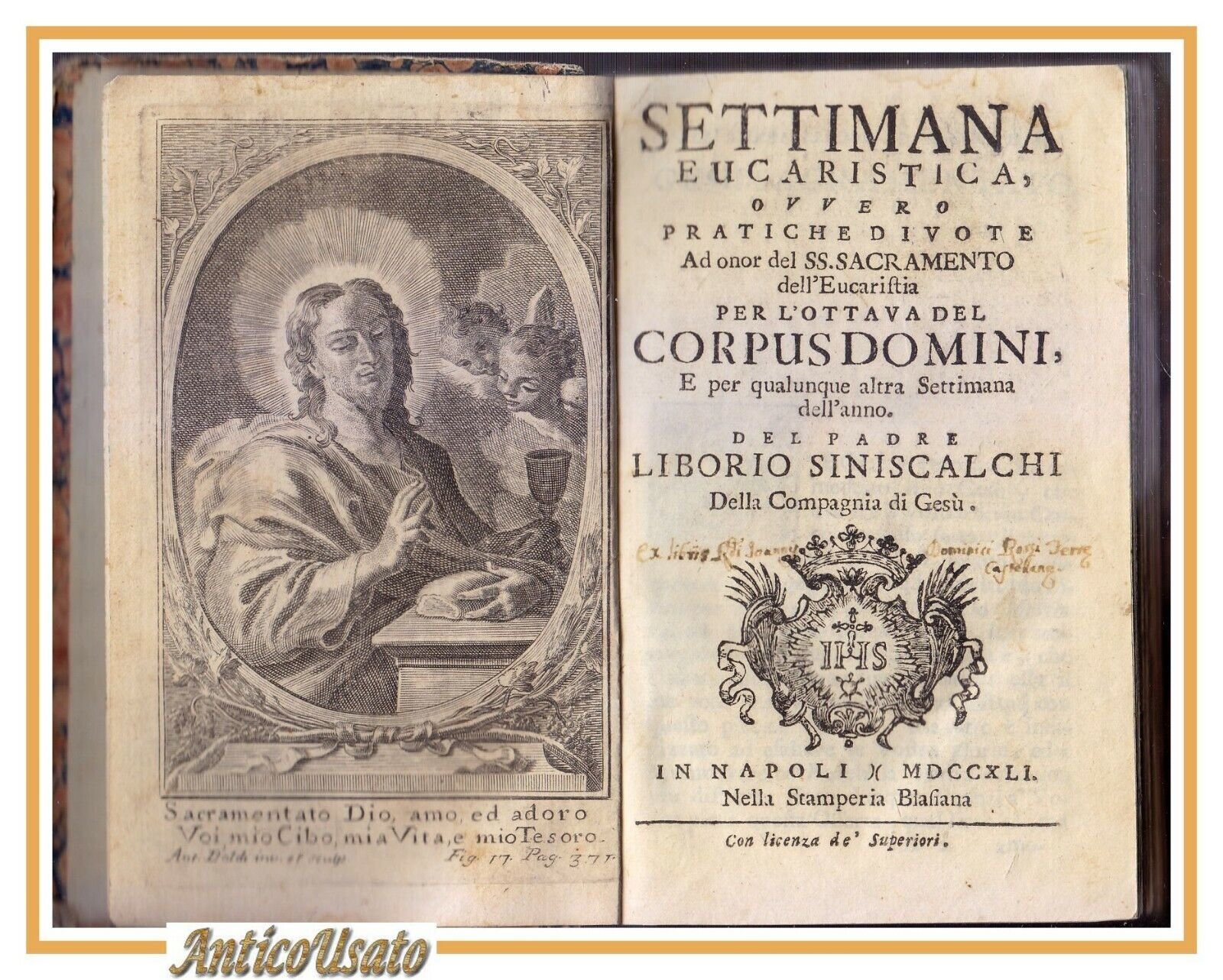 SETTIMANA EUCARISTICA pratiche divote di Liborio Siniscalchi 1741 libro antico