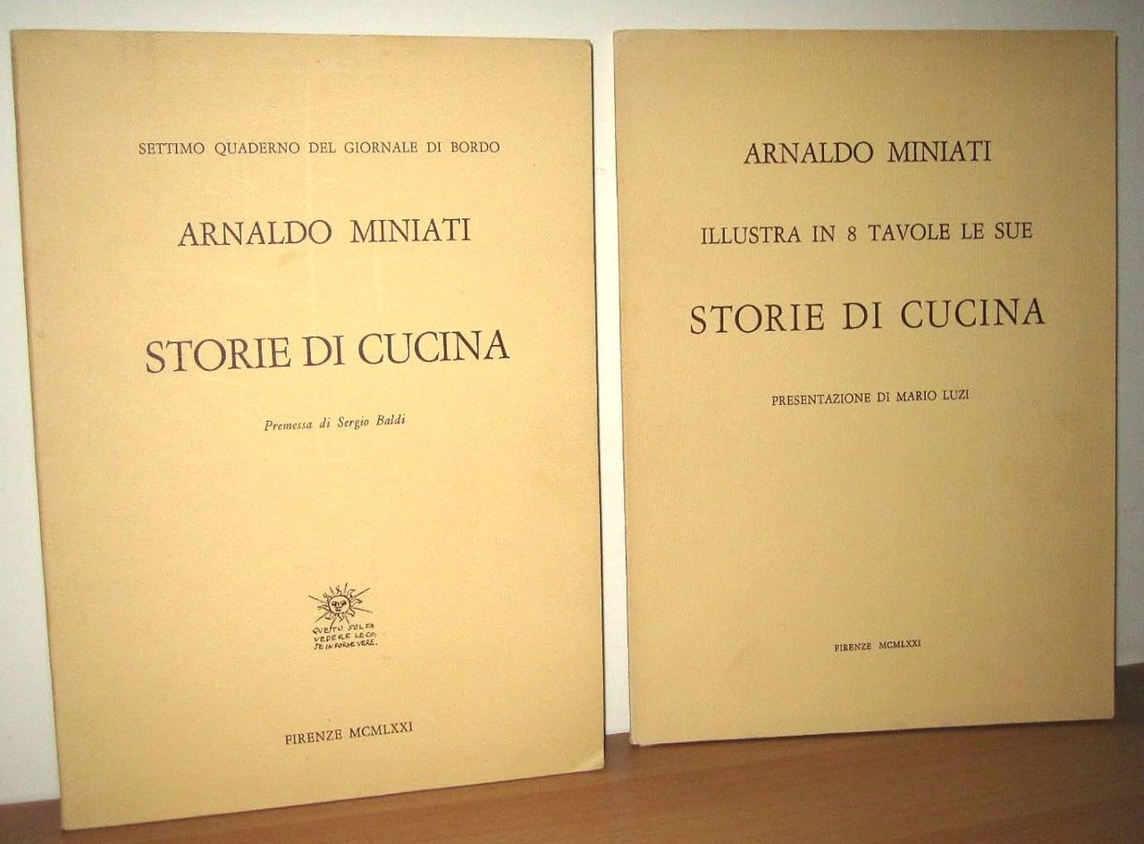 Storie di cucina viene pubblicato nel 1971 come settimo quaderno supplemento a Giornale di Bordo, pubblicazione di cultura e arte curata dal libraio antiquario Alberto Maria Fortuna. Il volume era accompagnato anche da una cartella (con presentazione di Mario Luzi) contenente otto disegni di Miniati legati al tema del cibo.