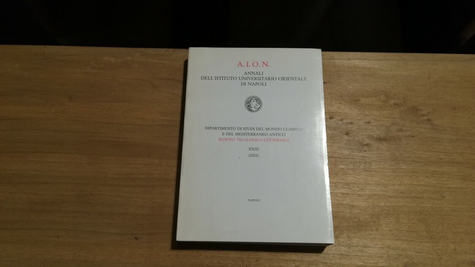 Sezione filologico - letteraria XXIII 2001 Dipartimento di studi del mondo classico e del mediterraneo antico A.I.O.N. - Annali dell'Istituto Universitario Orientale di Napoli Prima edizione 2001 Libro in ottime condizioni, minimi segni del tempo. Non esitate a contattarci per altre foto o richieste. Saremo lieti di soddisfare ogni vostra esigenza.