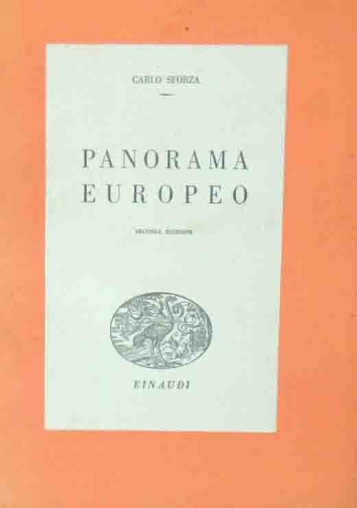 Carlo Sforza, Panorama europeo. Apparenze politiche e realtà psicologiche, traduzione di Maria Venturini, Giulio Einaudi Editore, Roma 1945, seconda ed., pp. 193, cm 22, br. ed. Collana Saggi, vol. 64. Leggere tracce d’uso alla brossura, dorso un po’ scolorito, minime fioriture, lieve ingiallitura della carta, per il resto buona copia. Intonso.