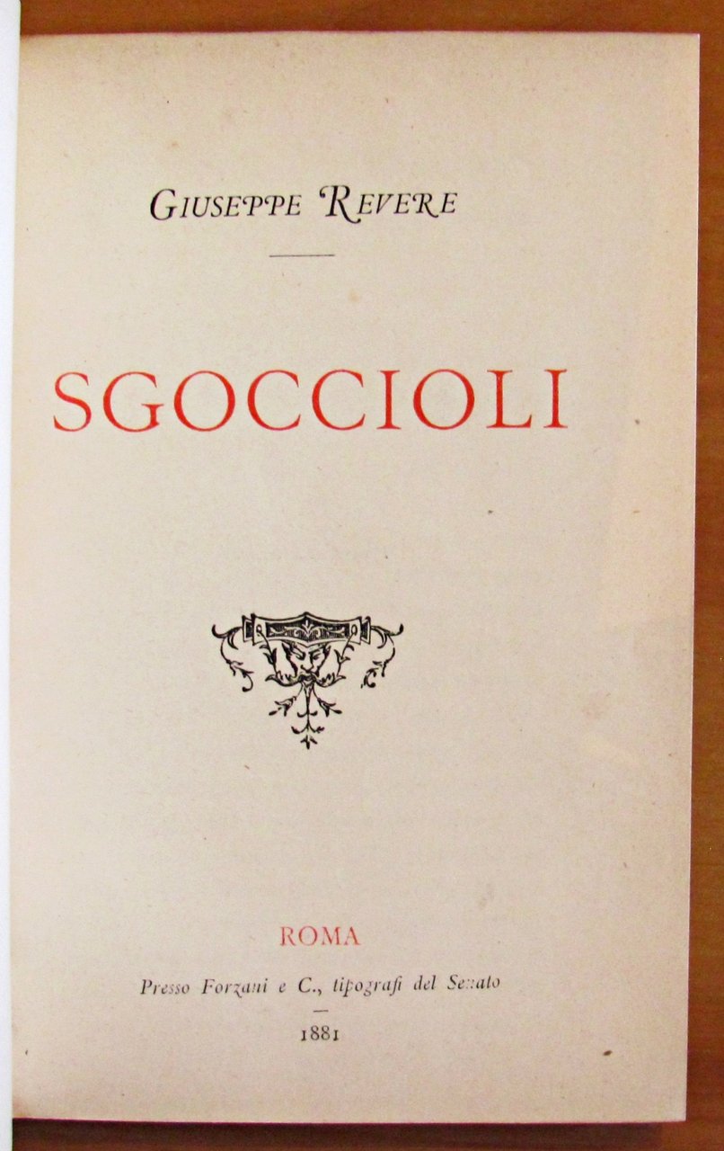 Testatine, finalini e capilettere in b/n n.t. Ed. Forzani & C. Tipografi del Senato - Roma, I edizione 1881. Rilegatura in cartoncino con ali e copertina originale applicata al piatto. 10,5x15; pp.72. RARO. OTTIMO STATO , Ottimo (Fine)