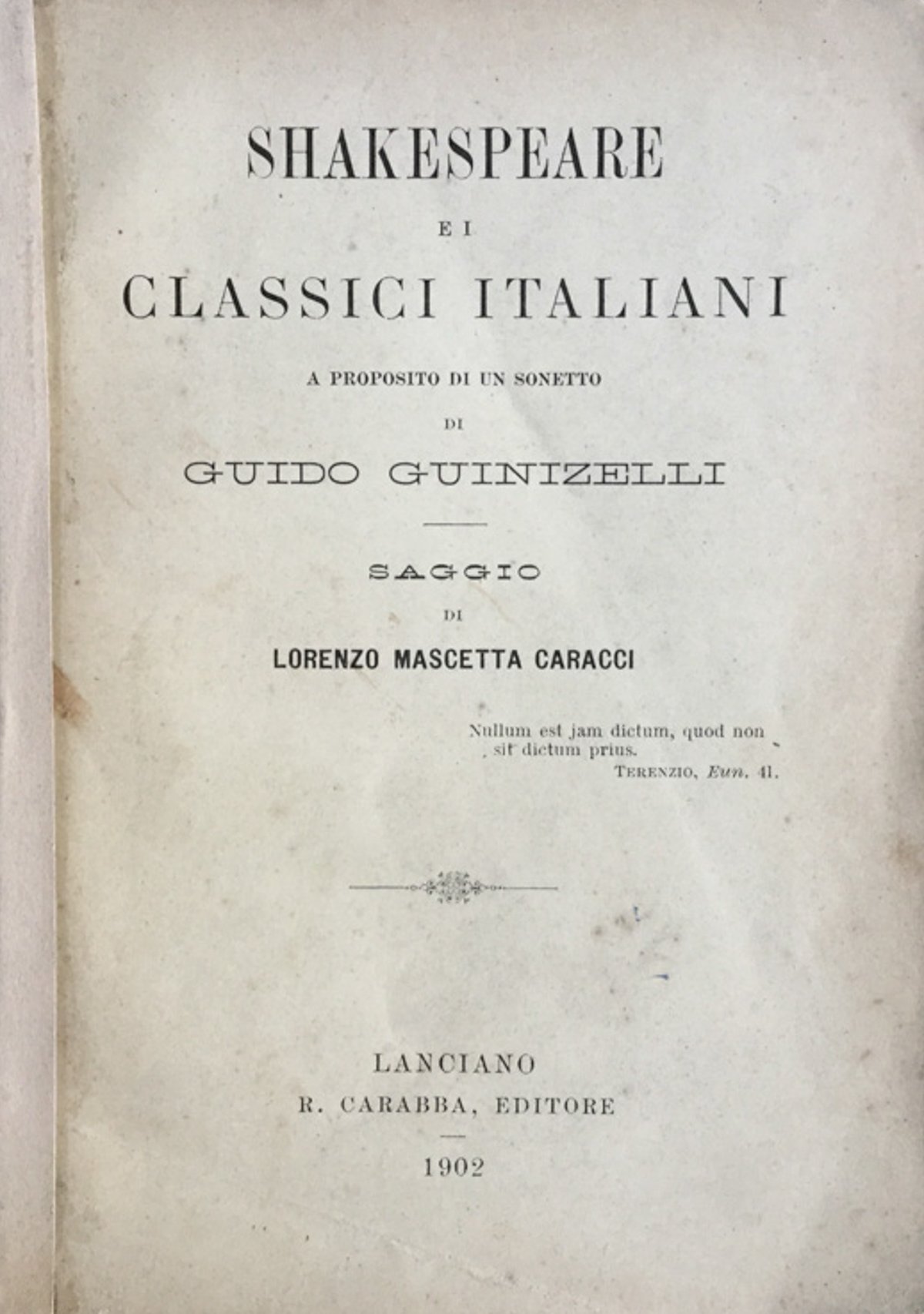 Shakespeare e i classici italiani a proposito di un sonetto di Guido Guinizelli