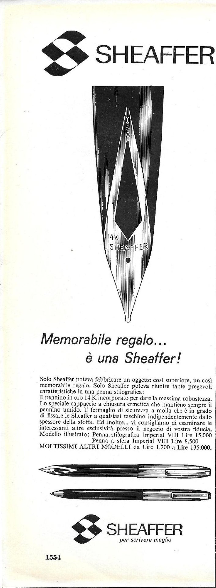 Sheaffer stilografiche/Cognac Boulestin. Advertising 1964 fronte /retro