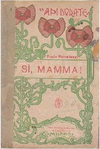 SÌ MAMMA di Paolo Bertulazzi.Luigi Trevisini editore, collana Api dorate, presumibilmente anni ‘20. 16 pagine. 2 belle illustrazioni b/n fuori testo. Copertina editoriale in brossura. Dimensioni: 13 x 19 cm.Stato di conservazione: buono (pagine ingiallite, manca il piatto posteriore, fettuccia di carta al margine sinistro del piatto anteriore e al dorso e menda al margine destro del piatto anteriore)